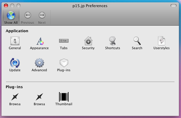 Dock アイコンやメニューバー・ツールバー・ステータスバーの表示、ユーザスタイルシートやユーザスクリプト、プラグイン機能など、Fluid で作成したアプリケーション毎に設定することができます。