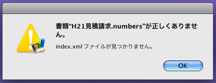 旧バージョンで作成したファイルを Numbers ’09 で開いて保存するとファイル形式が変更されるのか、’08 では開けなくなってしまいました。